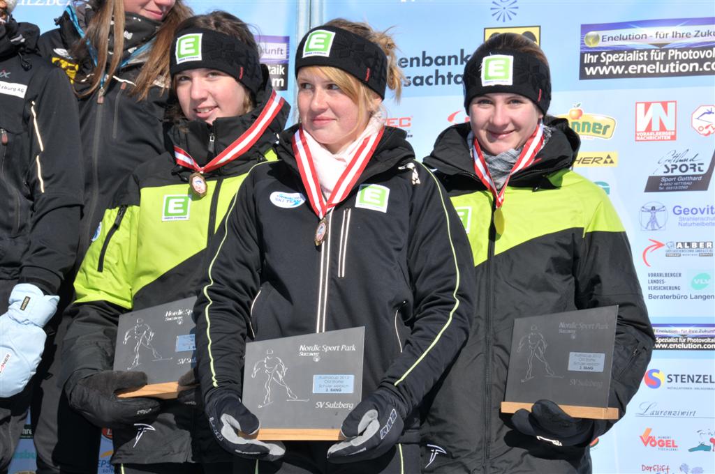 Die Mädchen, bei der die Startläuferin Sabrina Dichtl schon für eine gute Ausgangsposition sorgte, machte die Schlussläuferin Melanie Hochfelner den Sack zu und sicherte mit 12 Sec. Vorsprung vor Kärnten die Bronzemedaille ab. Die Dritte im Bunde des erfolgreichen Trios, war die Admonterin Elena Wippel. Sieger: Salzburg vor Tirol.